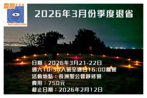 3 月份季省: 預苦期靜修 仍有少量名額,歡迎報名參加! 本週六歸心共修 歡迎報名參加