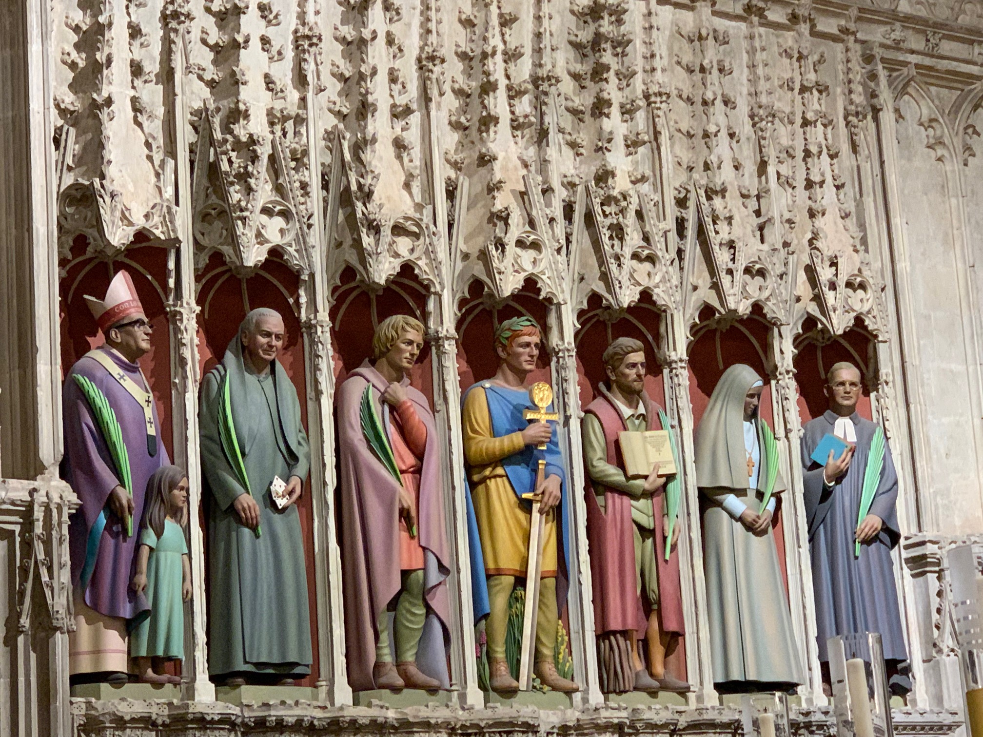 註:這是聖奧爾本斯大教堂內的其中一個聖壇,聖壇上擺放了七位殉道士的雕塑,最右邊的是潘霍華(1906-1945),他手拿著聖經。